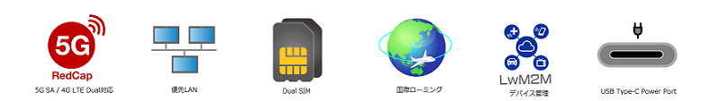 ※本製品は、低消費電力・低コストを目的とした5G RedCap(NR-Light)規格に対応しており、従来のフルスペック5Gと比較して通信速度は制限されます。