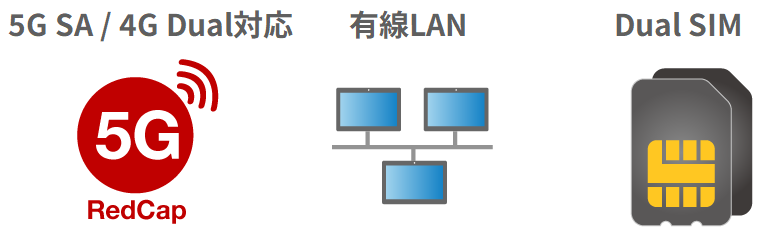 5G RedCapは、規格の軽量化によって通常の5G「高速大容量(eMBB)」と比べ、小型・低消費電力・シンプルなアンテナ構成であるため、IoTや産業向けに最適です。